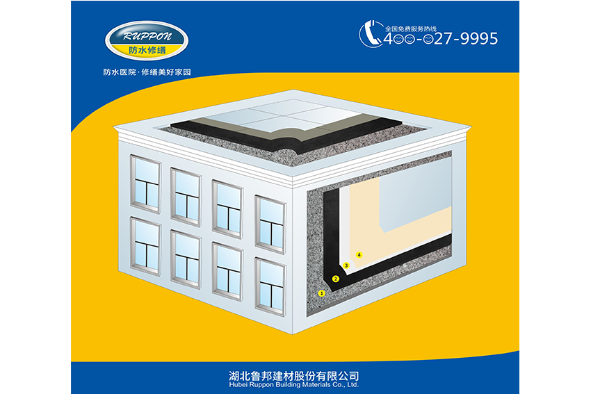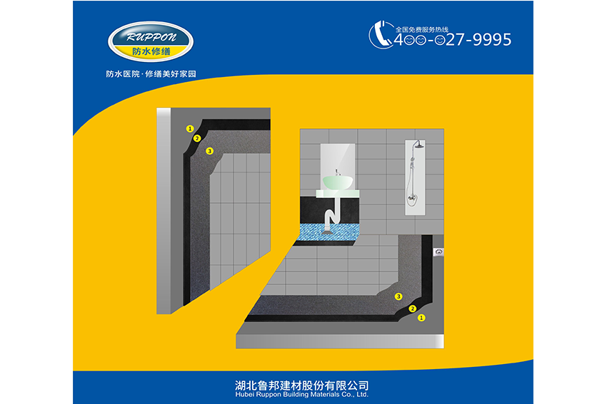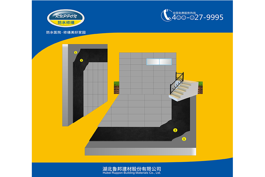 (5)保护、装饰层:待涂膜完全干燥固化后,选择与原内墙相同或相近的材料与色泽,用半岛在线Ruppon防水修复专用砂浆作粘结层,补修装饰面层。