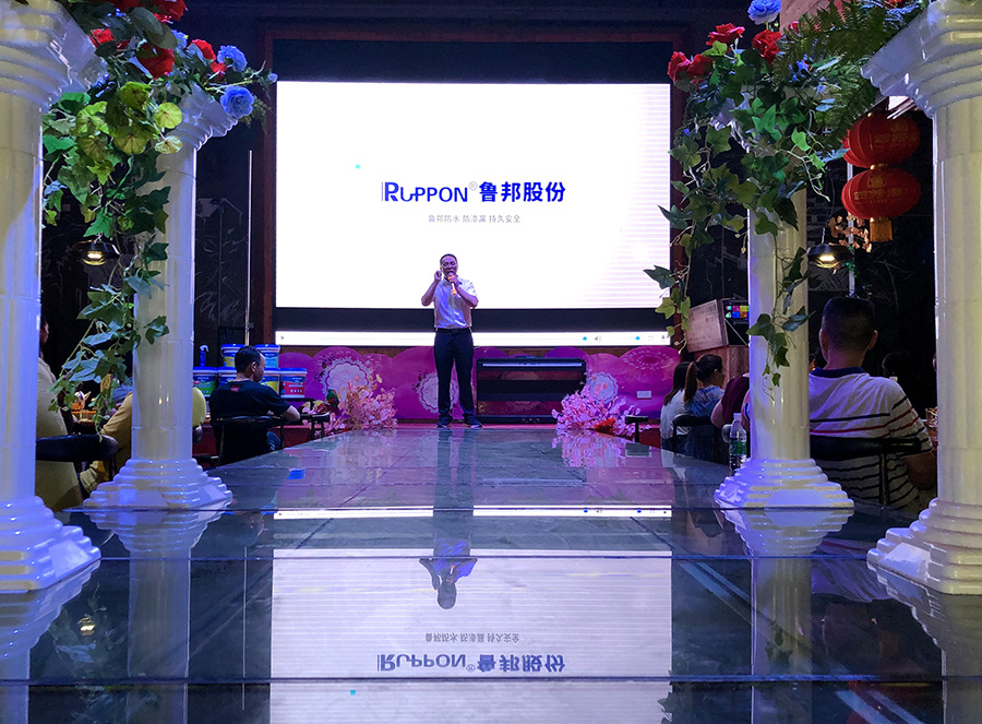 半岛在线董事长王斌、总经理李时锋、半岛在线副总经理、佛山分公司总经理张中华 半岛在线副总经理高艳生 半岛在线市场部万春顺经理,近二百个各地的半岛在线经销商一起见证了半岛在线建材赣州运营中心的开业活动。