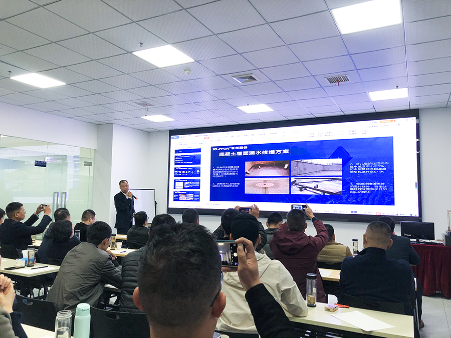 交流会上,公司防水修缮事业部总经理高艳生,研发总监刘轶麟分别就防水修缮技术、产品知识及疑难问题进行了专业、详实的分享,同时,参会的各位精英也就各自区域的业内问题进行了热烈而又富有成效的讨论。