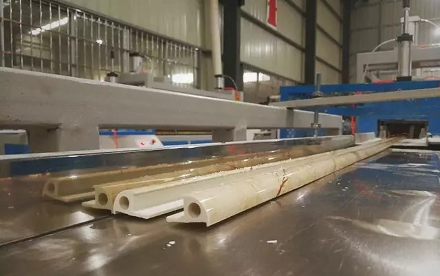 经过紧张的40天的筹备、安装、调试,总投资1500万的科技石线条生产线一期设备顺利产出六种形状、七十二种款式的石塑线条成品。质量媲美现有市面产品,价格直击市场底线。